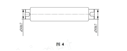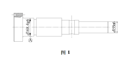 同轴度用常规工具比较难测,在日常工作中常用测量跳动的方法代替。测量跳动的方法一般是用偏摆仪顶住两个中心孔或者用车床夹持,这样旋转零件,看百分表(或千分表)的数值。如图1所示,d168.4g6为基准A,要求测量d155n6对基准A的同轴度d0.05。将最左端夹在车床卡盘上,在顶尖部用百分表先打基准找正,再将表移至d155n6端,观察此时表的读数差值,即为同轴度值。