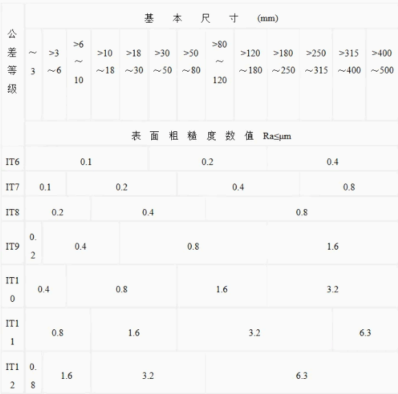 表面粗糙度等级与尺寸精度等级与规格大小的要求